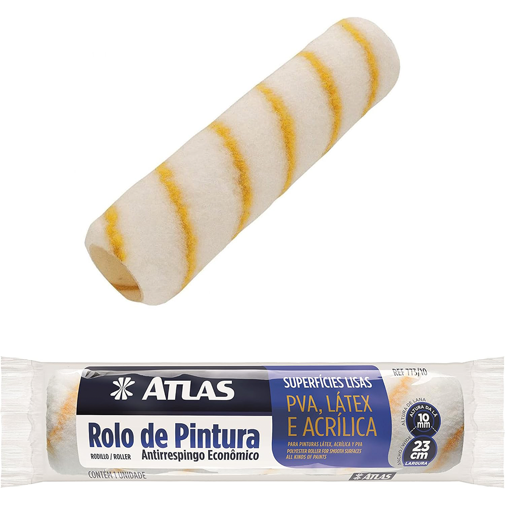 Acabamento uniforme com baixo respingo. O Rolo de Lã Atlas Anti-Respingo carrega bem a tinta, libera de forma constante e deixa a parede com textura regular — ideal para látex/acrílica e repinturas rápidas.